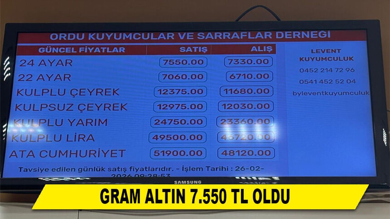 Altın piyasasında hareketlilik sürüyor. 26.02.2026 tarihi itibarıyla altının satış fiyatı 7.550 TL’ye yükselirken, alış fiyatı ise 7.330 TL seviyesinde işlem görüyor.