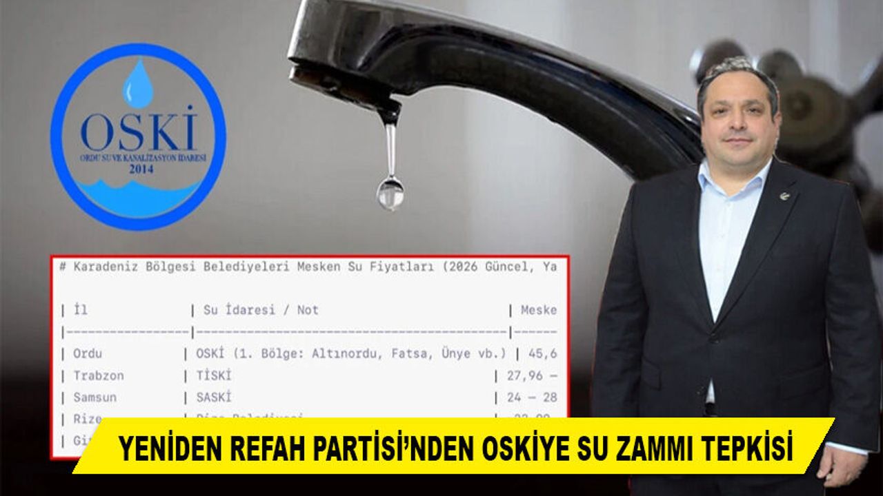 Yeniden Refah Partisi Altınordu İlçe Başkanı Ahmet Yılmaz, Ordu’da su fiyatlarına yapılan zamma tepki göstererek OSKİ ve Büyükşehir Belediyesi’ne çağrıda bulundu.
